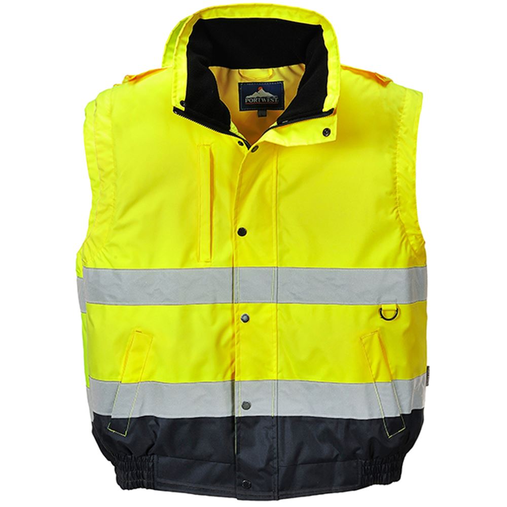 Portwest C468 Yellow/Navy Padded Waterproof 2-in-1 Hi Vis Bomber Jacket