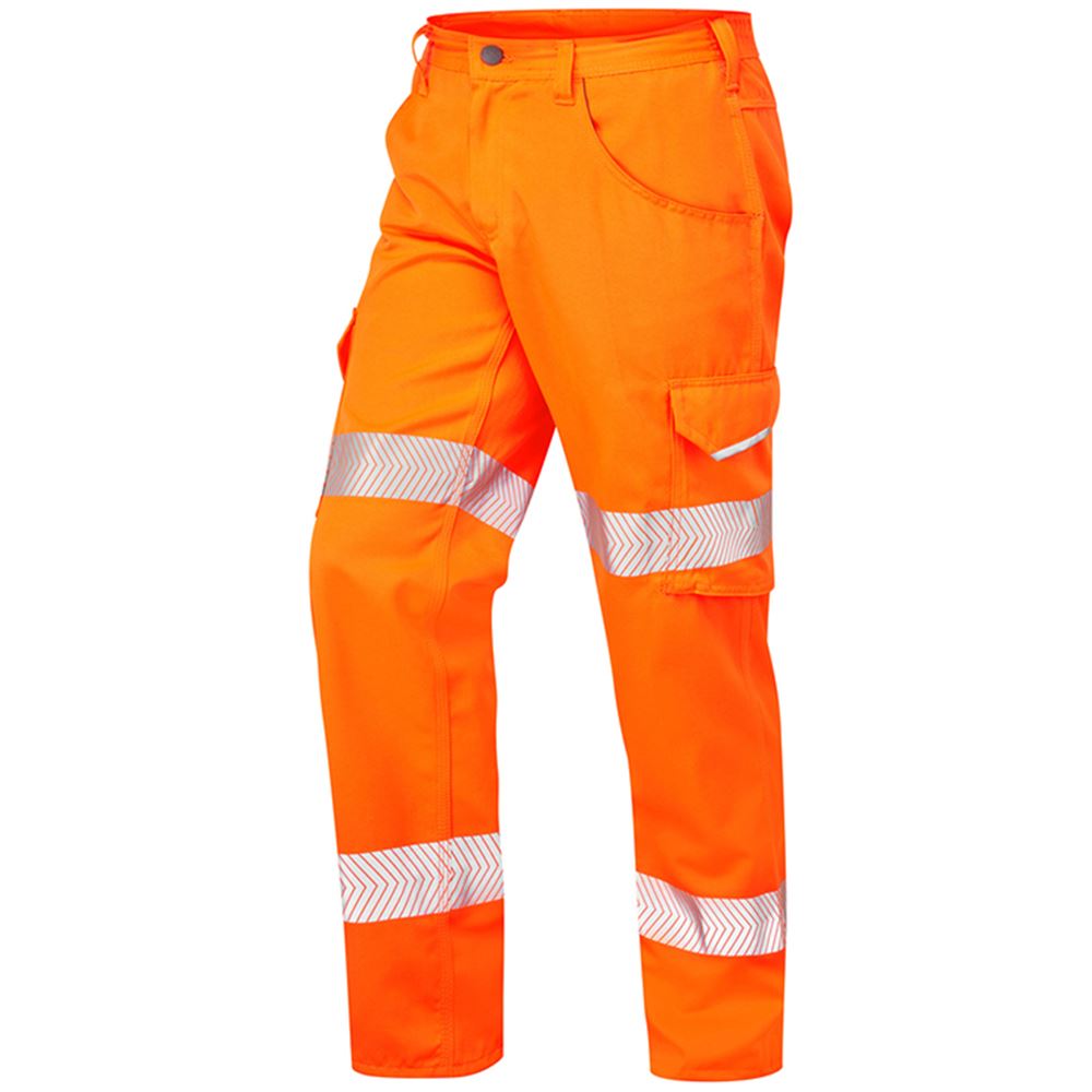 Leo Workwear Yelland Orange Lightweight Polycotton Hi Vis Cargo Trouser