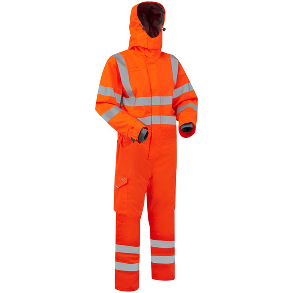 Leo Workwear Watertown Orange EcoViz 10KX Waterproof Breathable Stretch Hi Vis Coverall