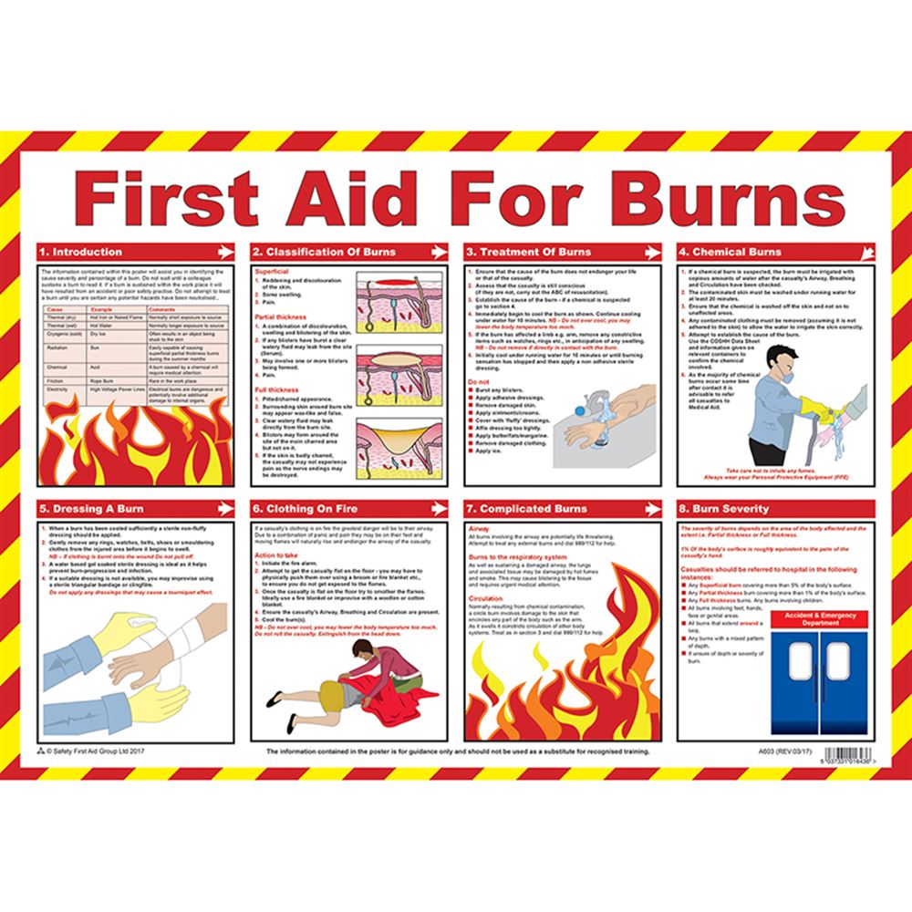 First Aid For Burns Poster - Laminated A2