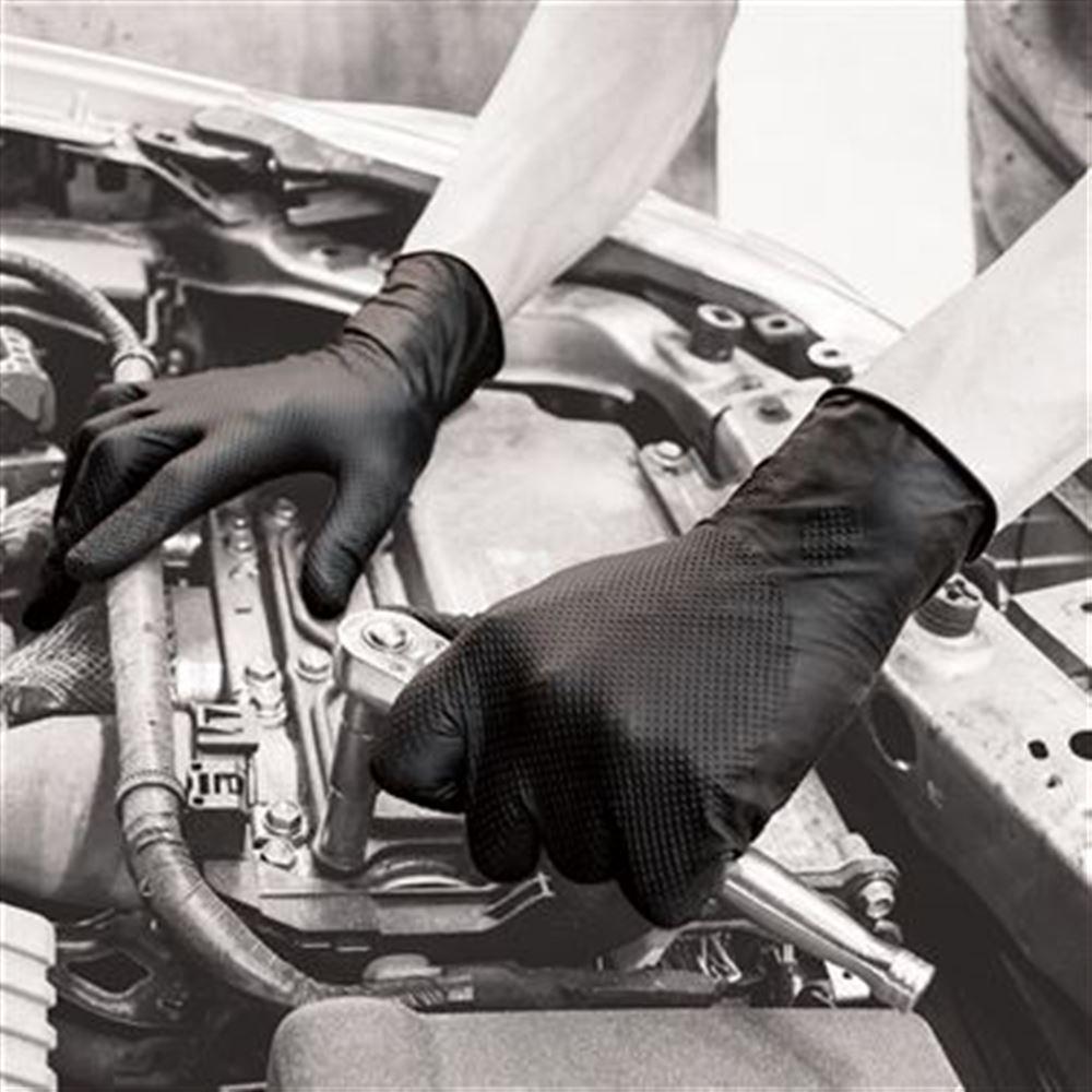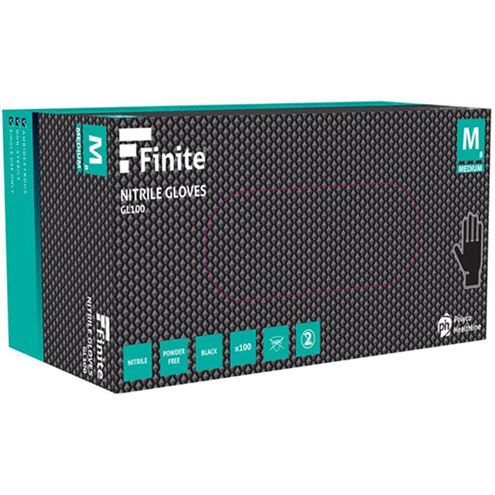 Polyco Bodyguards GL100 Finite Black Heavy Duty Diamond Grip Nitrile Disposable Gloves AQL1.5 (Box 100)
