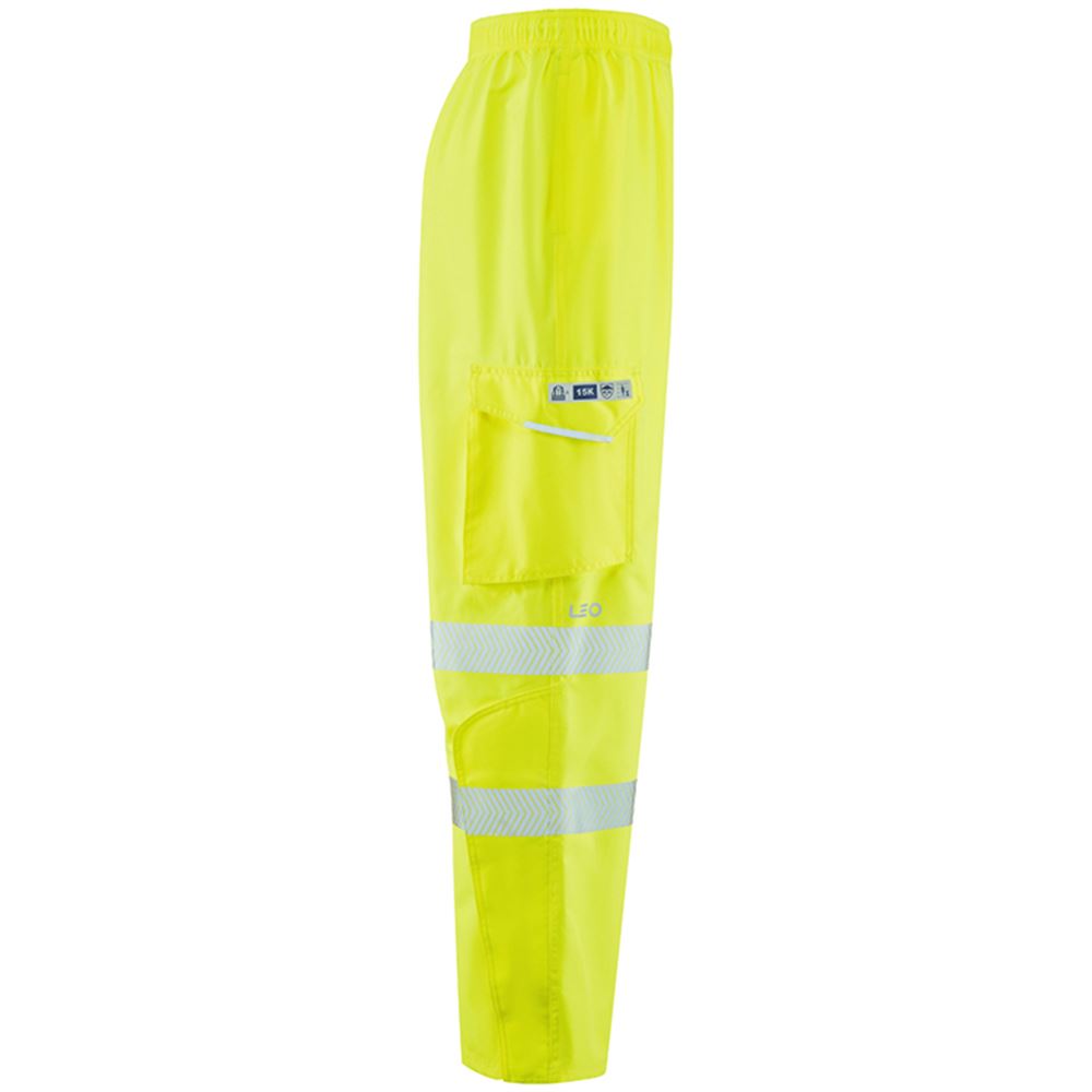 Leo Workwear Instow Yellow LTEC 15K Waterproof Breathable Hi Vis Cargo Trouser