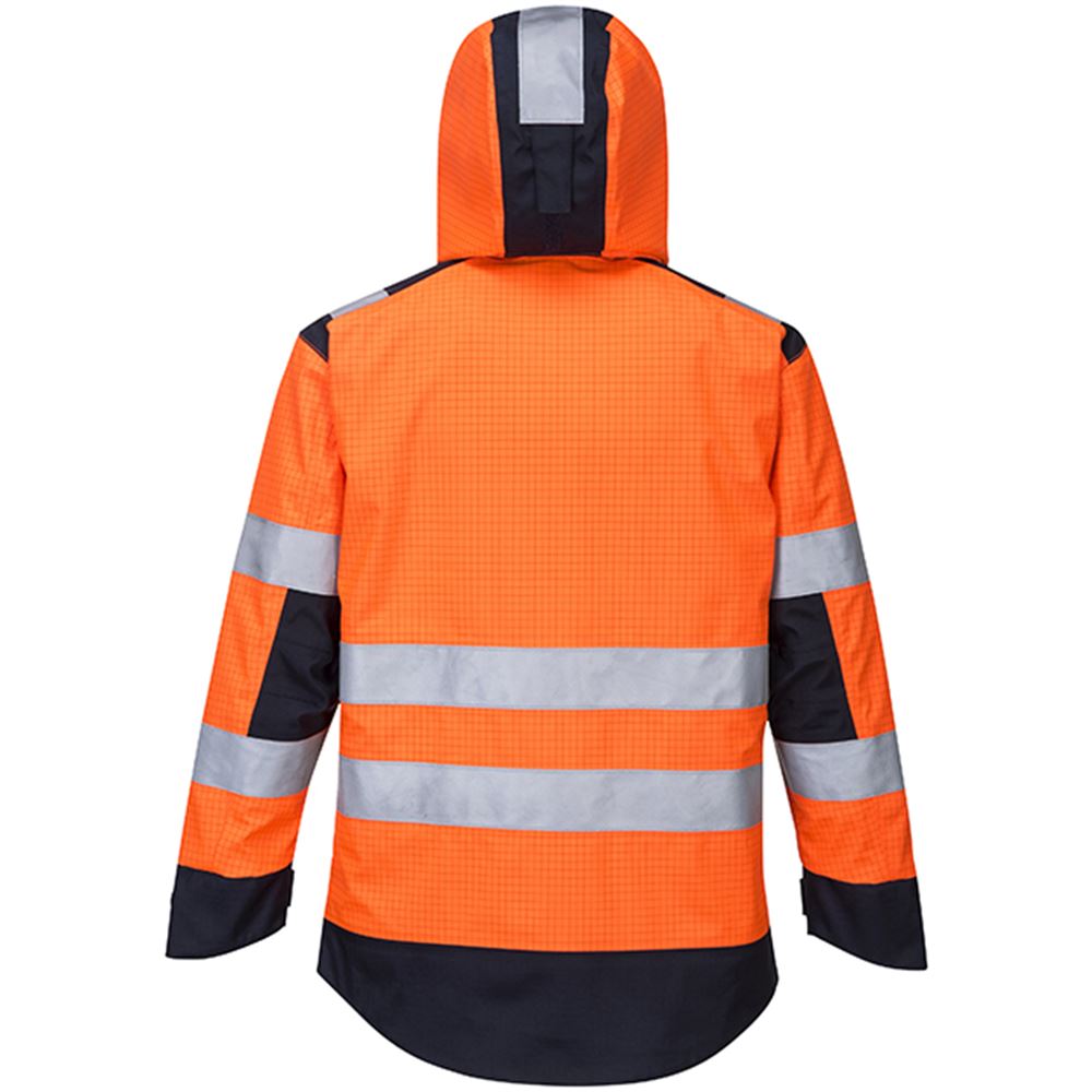 Portwest MV70 Orange/Navy Modaflame Rain Waterproof Inherent Flame Resistant Anti Static Arc Hi Vis Rain Jacket