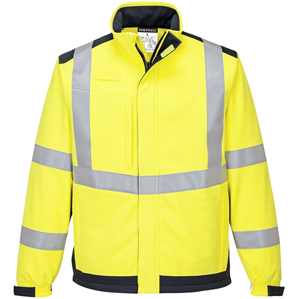 Portwest MV72 Yellow/Navy Modaflame Softshell Inherent Flame Resistant Anti Static Arc Hi Vis Softshell Jacket