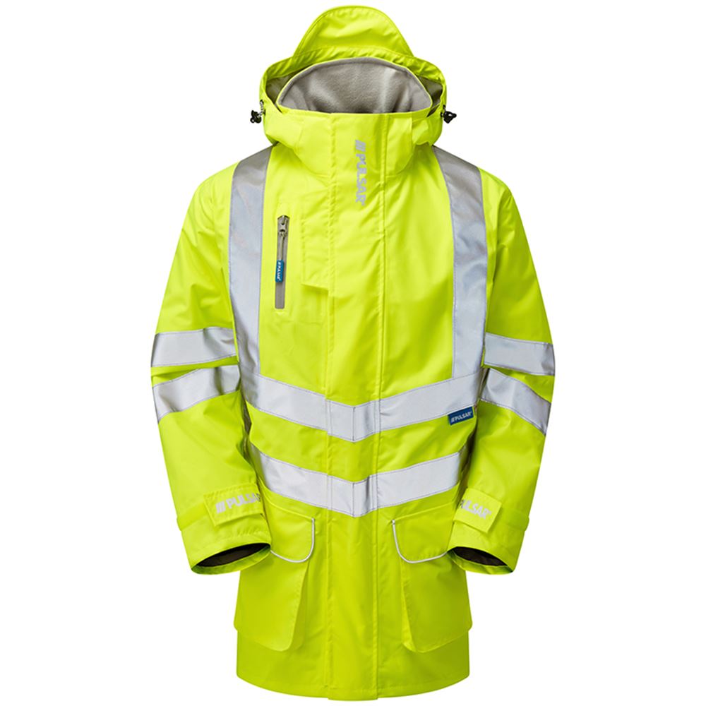 Pulsar Protect P421-R Yellow GRS Recycled Mesh Lined Waterproof Hi Vis Storm Jacket