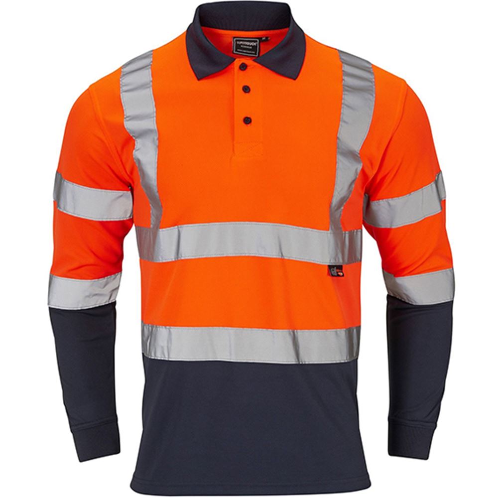 Supertouch Orange/Navy Hi-Vis Two Tone Long Sleeve Polo Shirt