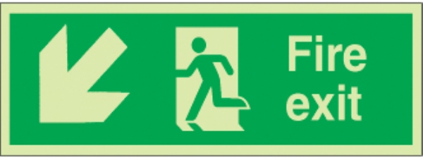 fire exit running man right arrow diag. down left