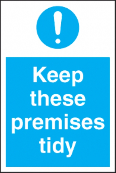 This keep these premises tidy sign -portrait is part of our comprehensive range of sign products to make your business premises, office, factory, school or construction site a safe and secure place to work. As a leading supplier of safety signs where applicable our signs meet the latest EN ISO 7010 standards.