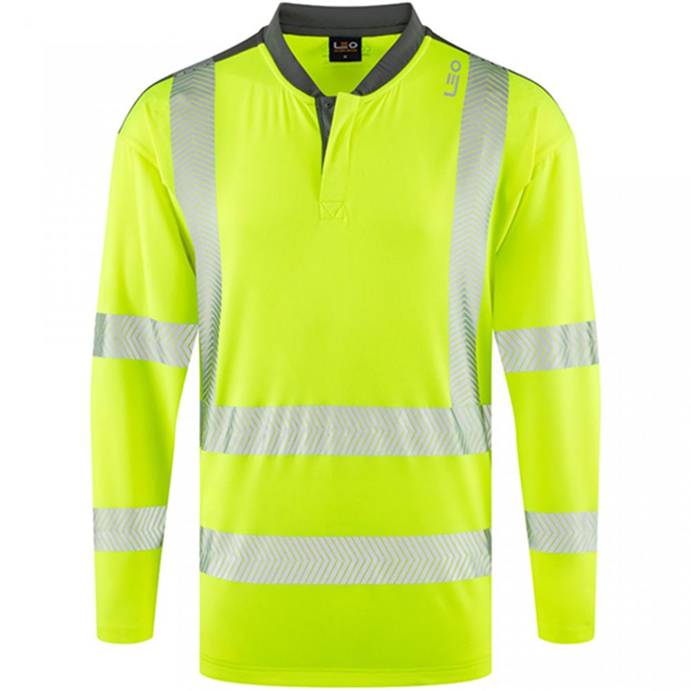 Leo Workwear Watermouth Yellow EcoViz Coolmax Performance Long Sleeve Hi Vis T-Shirt